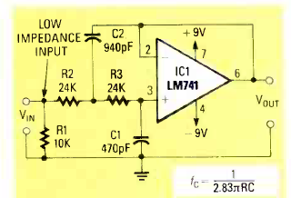 Este circuito foi encontrado na revista Radio Electronics de maio de 1989. Os componentes podem ser alterados para operação em outra frequência. O circuito exige fonte de alimentação simétrica.