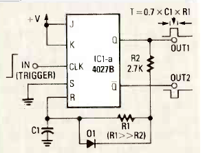 Este circuito foi sugerido por um artigo na revista Radio Electronics de abril de 1988. O flip-flop é do tipo JK.