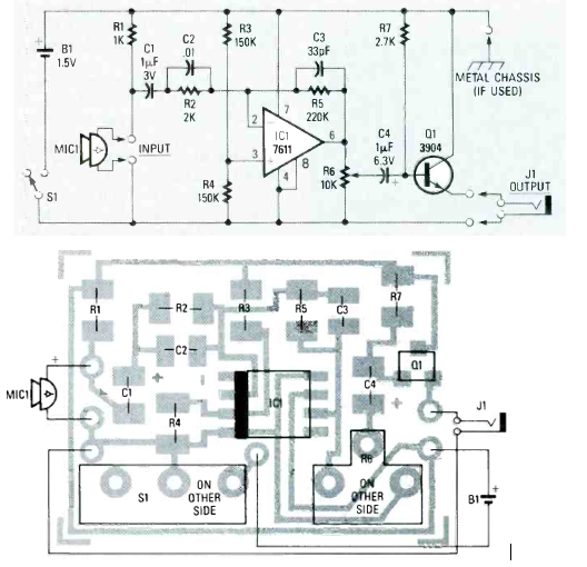 Se você tem habilidade e consegue componentes SMD pode montar este pequeno amplificador. Encontramos na revista Radio Electronics Experimenter edição especial de 1990.