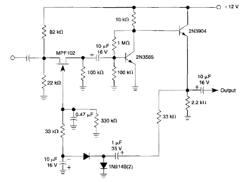 Este circuito é de uma publicação dos anos 90 denominada William Sheets. O circuito consiste numa etapa que tem o ganho de acordo com a intensidade do sinal.