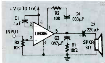 Este circuito tem um ganho de 6 dB para baixas frequências de 85 Hz podendo ser usado num mini subwoofer. O circuito é de uma Radio Electronics de março de 1990.