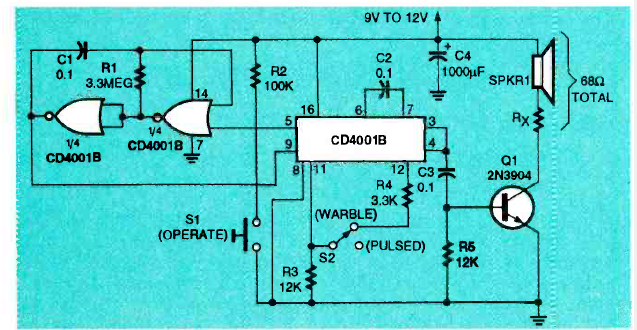 Este circuito foi encontrado na revista Electronics Now de outubro de 1994. O CI 40446 é um PLL pouco comum atualmente. O circuito tem dois tipos de efeitos.