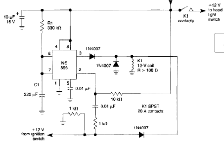 Este circuito de desligamento automático foi encontrado num William Sheets dos anos 90. O circuito desliga o sistema elétrico de um carro de forma automática.