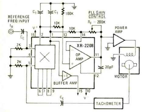 Usando o circuito integrado XR2208 encontramos esta aplicação na revista Radio Electronics de abril de 1978. O circuito exige uma etapa de potência e deve ser alimentado por fonte simétrica de 15 V.
