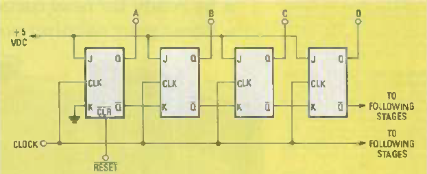 Este circuito lógico que transfere o nível de uma porta a seguinte a cada pulso de clock foi encontrado na revista Radio Electronics de setembro de 1985.