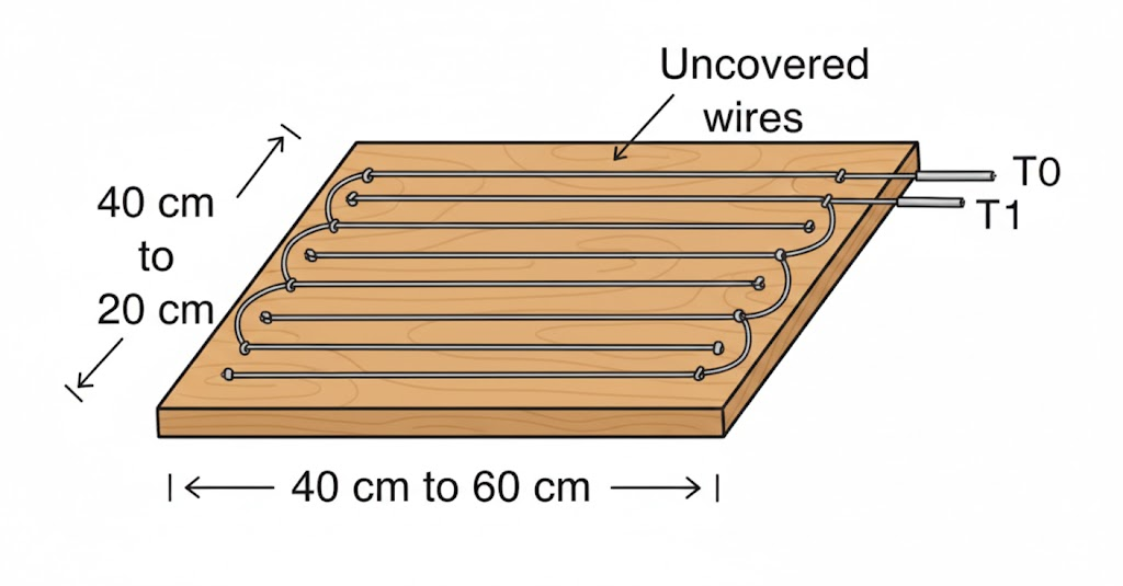 A distância entre os fios pode variar de 0,4 a 1 centímetro, dependendo do tamanho dos insetos a serem mortos. Essa distância é determinada pelo fato de que o inseto deve tocar dois fios ao mesmo tempo para receber a descarga elétrica. Os fios para o circuito devem ser isolados e o comprimento máximo é de 3 metros.