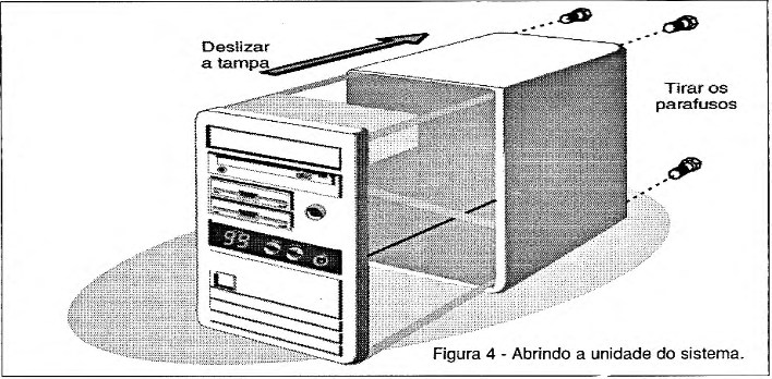 b) Estando pronto para instalar o modem, abra cuidadosamente a unidade do sistema, observe a figura 4.