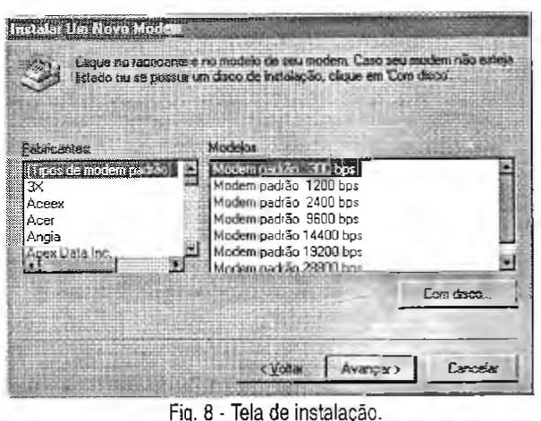 Uma Tela de instalação de modem é mostrada na figura 8: