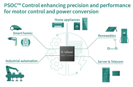 Os microcontroladores da família PSOC™ Control da Infineon Technologies são os MCUs de última geração desenvolvidos especificamente para aplicações de controle de motores. Utilizando controle em tempo real com o Arm® Cortex®-M33, esta família de microcontroladores de alto desempenho permite que os projetistas ofereçam as inovações de mercado que os clientes esperam de seus dispositivos de última geração.