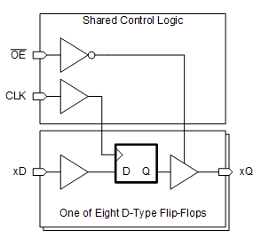 Todos os canais compartilham uma entrada de clock (CLK) disparada pela borda de subida e uma entrada de habilitação de saída (OE) ativa em nível baixo. Este dispositivo inclui uma pinagem de passagem para facilitar o roteamento no barramento e possui entradas compatíveis com TTL. O flip-flop SN74AHCT374-Q1 é qualificado pela norma AEC-Q100 para aplicações automotivas.