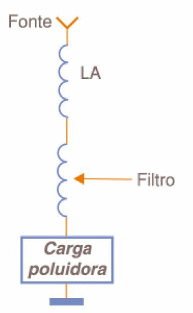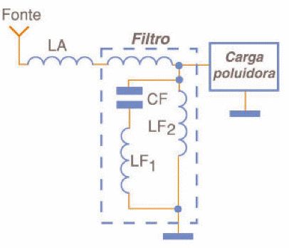 Neste caso, conforme exibe a figura 5, o que se faz é ligar um filtro LC em paralelo com o circuito alimentado, responsável pela poluição da energia.
