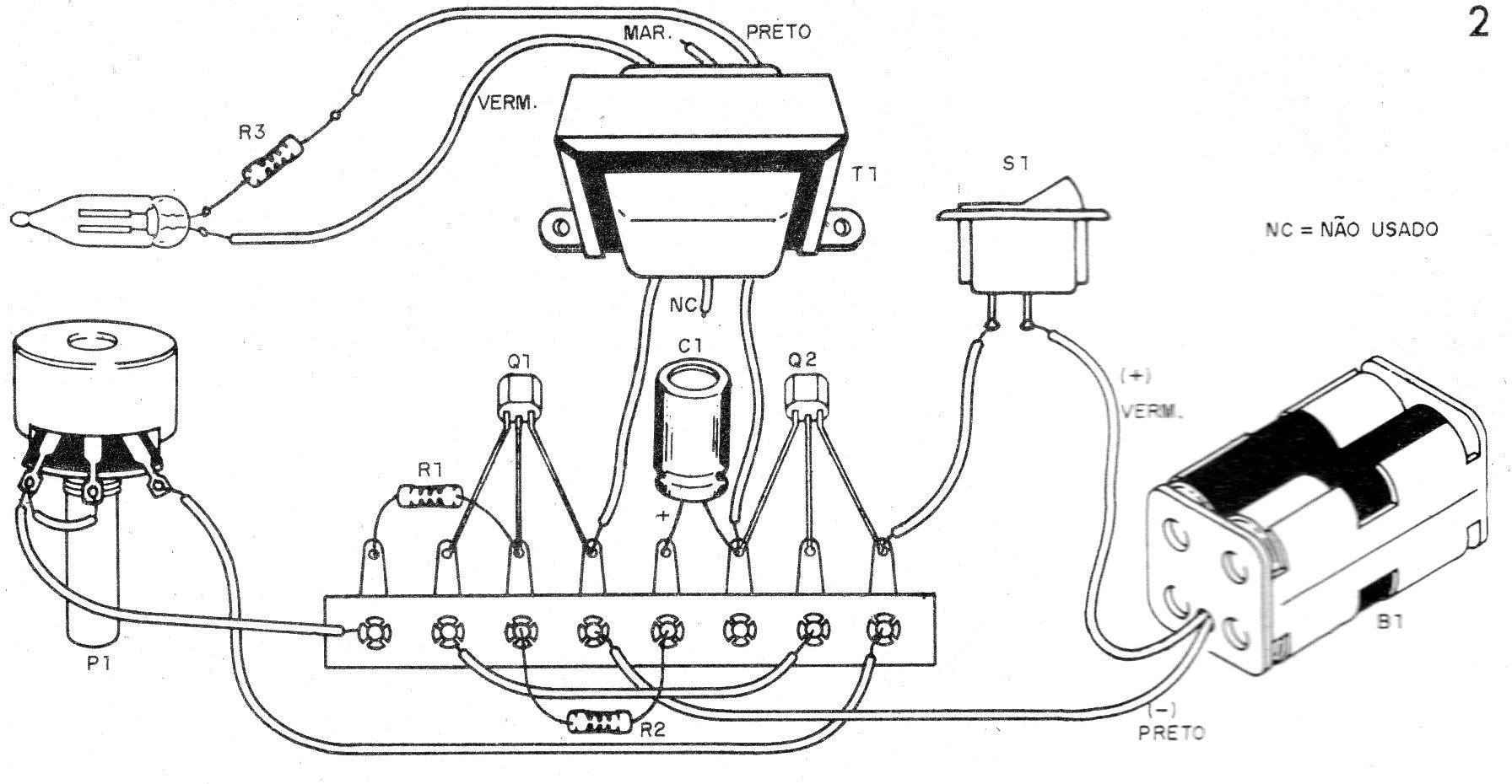 Como se trata de montagem experimental não crítica, ela pode ser realizada com base numa ponte de terminais com a disposição de componentes mostrada na figura 2.