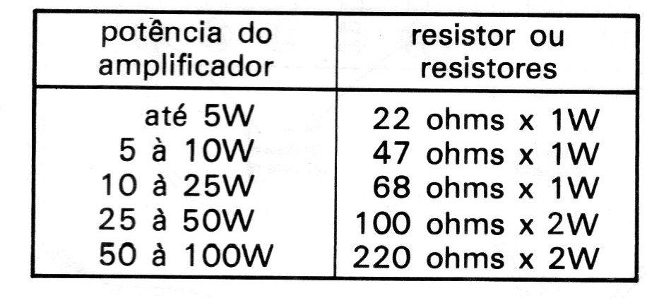 R3, R4 - resistores de 1 ou 2 W (conforme a potência do amplificador) - ver texto
