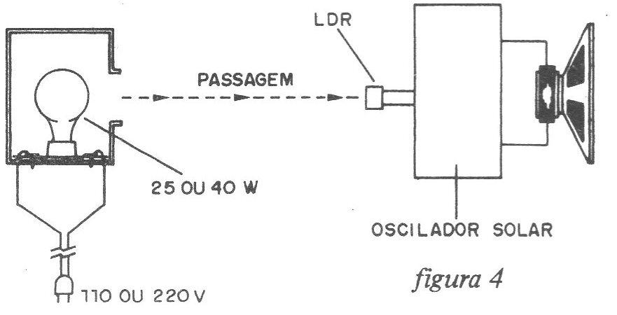 Na figura 4 damos um exemplo de alarme experimental de passagem que opera quando o feixe de luz da lâmpada como é interrompido.