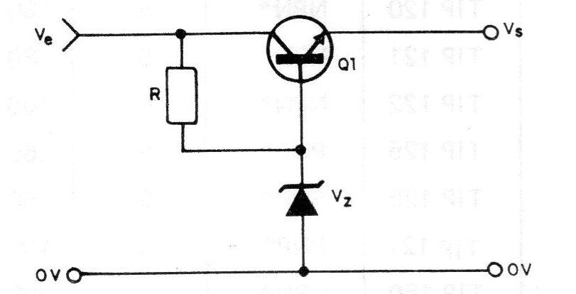 Neste sistema, o díodo oferece uma referência de tensão ao transistor que atua então como um reostato ”automático“.