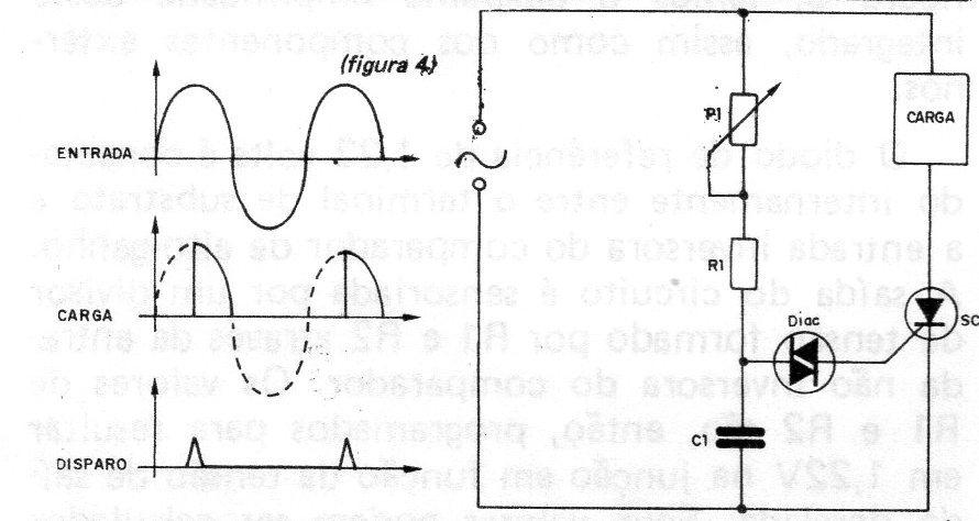 Um exemplo de como podemos controlar a potência numa carga, sem a necessidade de dissipar grandes quantidades de energia na forma de calor, é dada pelos SCRs em circuitos, como o da figura 4.