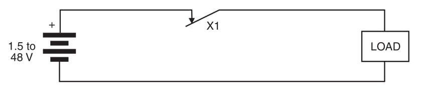 O circuito simples mostrado na Figura 2 mostra como um sensor normalmente fechado (NC) é usado para controlar uma carga. As recomendações são as mesmas que no bloco anterior. Observe que o sensor mantém os contatos fechados (ou abertos) apenas enquanto uma força age sobre ele.