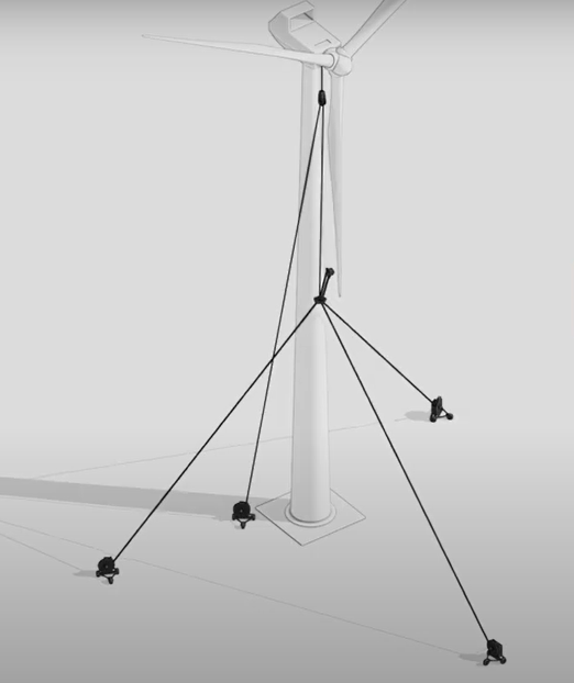Convenhamos, as turbinas eólicas são enormes! Já imaginou estar no topo de uma delas para realizar alguma manutenção e cair daquela altura?! Complicado né… Mas a robótica também pode nos ajudar com isso! É com esse tipo de procedimento que o grupo Aerones, da Letônia, trabalha: são 4 robôs conectados por um sistema de cordas que atuam em conjunto para levantar e movimentar um robô principal, que realiza as tarefas desejadas nas turbinas, como pode ser visto na figura (Figura 5 - Robôs da Aerones). E tudo é controlado remotamente!