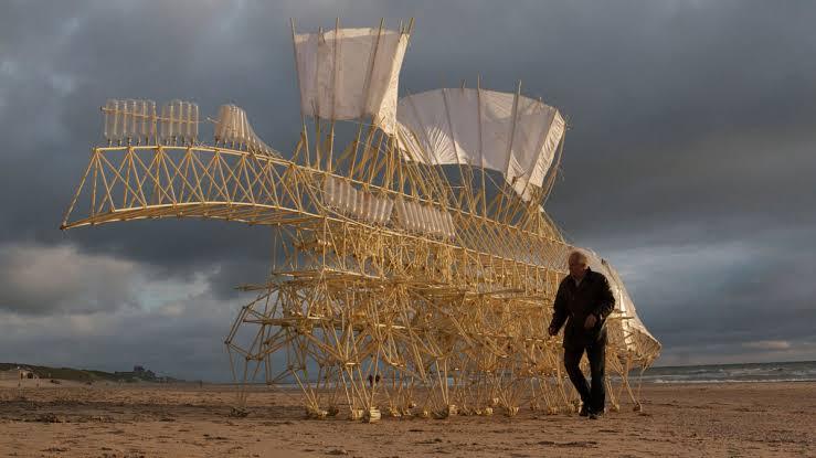 Outra forma de energia renovável muito relevante é a eólica. Sabia que é a forma de energia que mais cresce no mundo? Agora, imagine animais movidos a vento (não, não são os pássaros). É isso que Theo Jansen, um artista holandês, pensou em 1990, quando decidiu construir uma forma diferente de vida: os Bichos da Praia, ou Strandbeests (Figura 9 - Strandbeest). Bem louco né? Eles são construídos com tubos de plástico e garrafas pet e seu único combustível é o vento, podendo inclusive armazená-lo. O artista se dedica aos bichinhos que se alimentam de vento há mais de 30 anos e já criou até uma genealogia de suas criações.