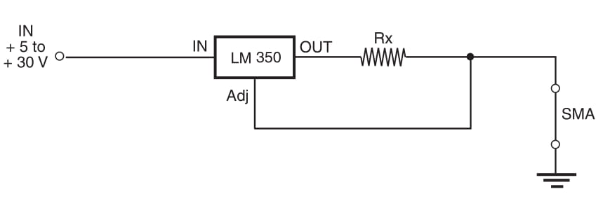 O bloco mostrado pela Figura 1 pode ser usado para manter a corrente constante através de um SMA na faixa de poucos miliamperes a 3 A. O resistor, de acordo com a corrente desejada, é calculado pela seguinte fórmula: