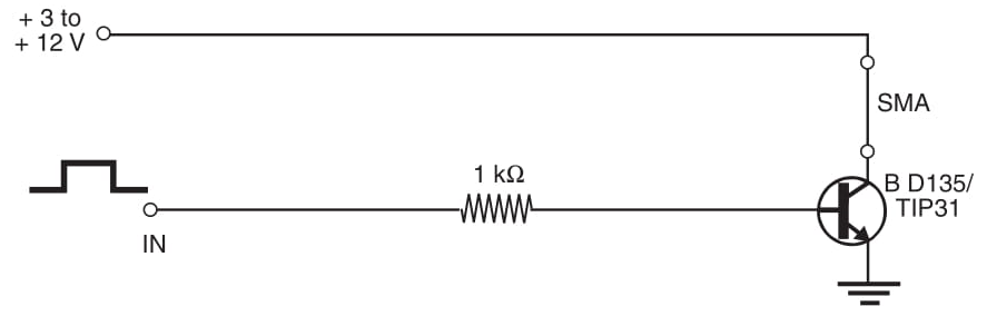 A figura 1 mostra um bloco simples usando um transistor NPN acionando um SMA (músculo eletrônico) de até 2 A. Esse circuito precisa de 20 mA para acionar 1 A SMA e menos para acionar os músculos de baixa corrente. As saídas TTL e CMOS podem conduzir SMAs de baixa energia usando este bloco. Para maior ganho, acionando cargas de até 1 A das saídas TTL ou CMOS, você pode substituir o transistor por um BD135 ou BD137. Em qualquer caso, o transistor deve ser montado em um dissipador de calor.