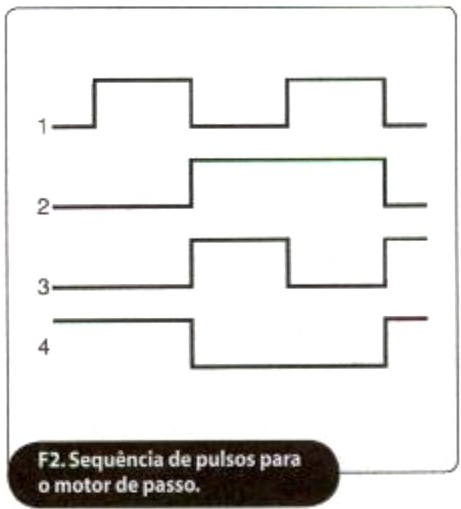 Este motor tem dois enrolamentos duplos que devem ser energizados a partir de uma sequência específica de pulsos para que ele rode, ou então, deve ter os enrolamentos energizados de forma que ele tenha seu rotor levado a uma posição desejada. Na figura 2 temos a sequência típica de pulsos que deve ser aplicada neste tipo de motor para que ele rode.