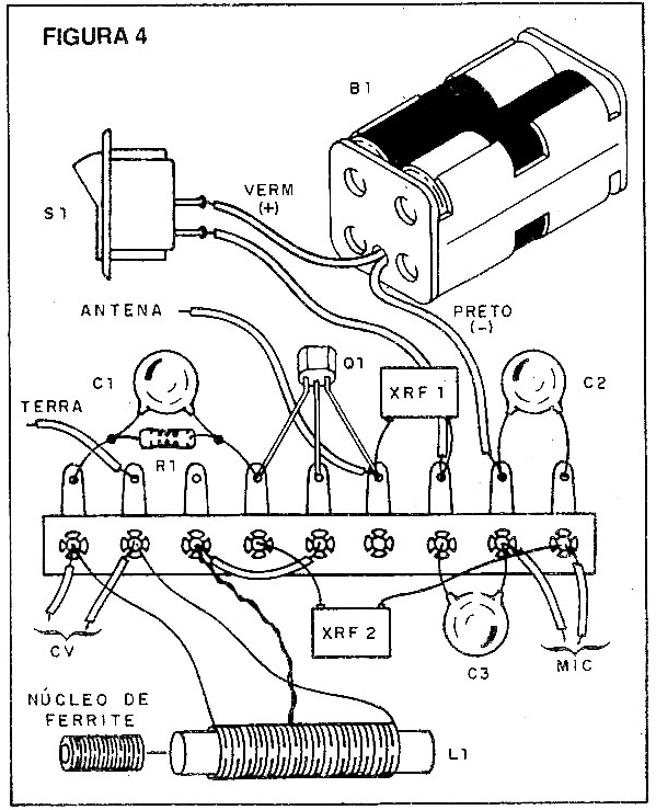 No ajuste pode acontecer de captar sinais em diversos pontos. Deverá escolher o mais forte. Captado o sinal, refaça a sintonia no receptor e afaste-se com ele para verificar o alcance. Peça para alguém falar diante do microfone, ou então ligue um outro radinho nas suas proximidades para servir de fonte de sinal. Comprovado o funcionamento é só usar, lembrando que a ligação à terra é fundamental para o máximo rendimento.