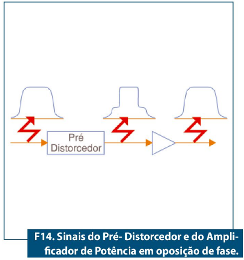 A ideia por trás desse dispositivo é adicionar à entrada do amplificador um sinal intermodulado controlado, com uma fase tal que quando o sinal for amplificado, na saída tem-se o cancelamento dos sinais f' e f" (figura 13 a e figura 13 b), ou seja, o sinal gerado internamente pela intermodulação do amplificador (fs' e fs") e o sinal de saída gerado pela amplificação do sinal de entrada (fs' e fs") estão em oposição de fase (figura 14).