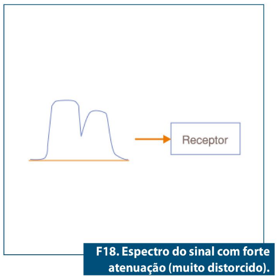Nas frequências onde a diferença de atraso equivale à diferença de fase de 180° o sinal sofre forte atenuação, já nas frequências em que a diferença de fase equivale a O° o sinal sofre um reforço. Nos casos de forte atenuação, o espectro do sinal recebido é fortemente distorcido. (Figura 18)