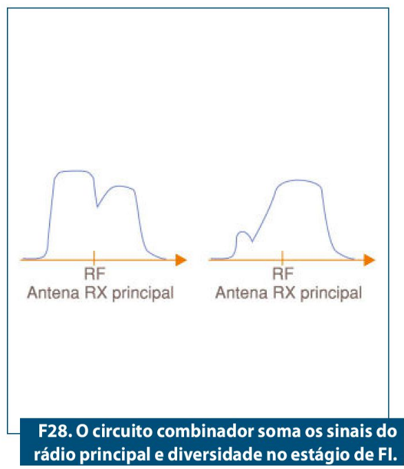 Atente para as figuras 27 e 28. O circuito combinador faz a soma dos sinais do rádio principal e diversidade no estágio de FI.