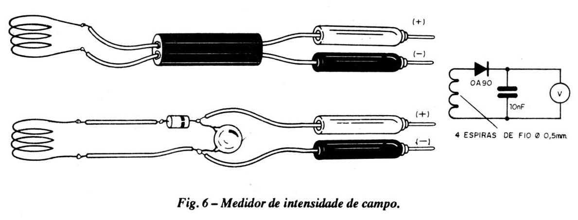 Para o ajuste podemos usar um medidor de intensidade de campo improvisado com alguns componentes e a escala de volts do multímetro, conforme mostra a figura 6.