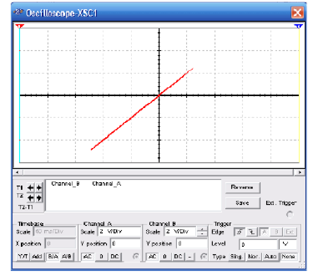 Na figura 6 temos o teste de um IGBT usando o traçador de curvas descrito nesse livro e um osciloscópio, com a forma de sinal que deve ser visualizada para um componente em bom estado.