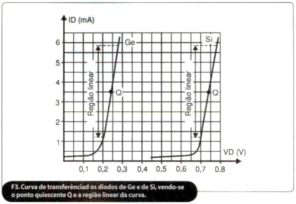 Para resolver a questão da linearidade, temos que determinar primeiro o ponto quiescente ou ponto Q, na região linear da curva de transferência do diodo, usado com retificador, figura 3. Pois, se ele não estiver posicionado bem no centro da região linear, o ponteiro não irá se deslocar linearmente, indo da posição das 8 para a posição