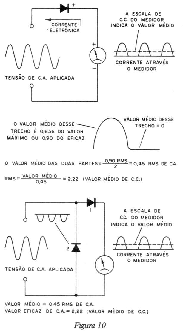 alternada não serve para medidas em C.C. Para valores elevados, o medidor a retificador é comparativamente linear e emprega uma escala substancialmente uniforme. É importante ressaltarmos que um medidor de bobina móvel, operado somente por correntes, tem inúmeros usos, para medidas das mais variadas quantidades elétricas.