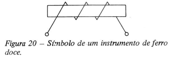 Os terminais "b" estão ligados à bobina e são os terminais do aparelho de medida. Para indicar que o aparelho é do tipo de ferro móvel ou magnético, a escala é marcada com o símbolo representado na figura 20.
